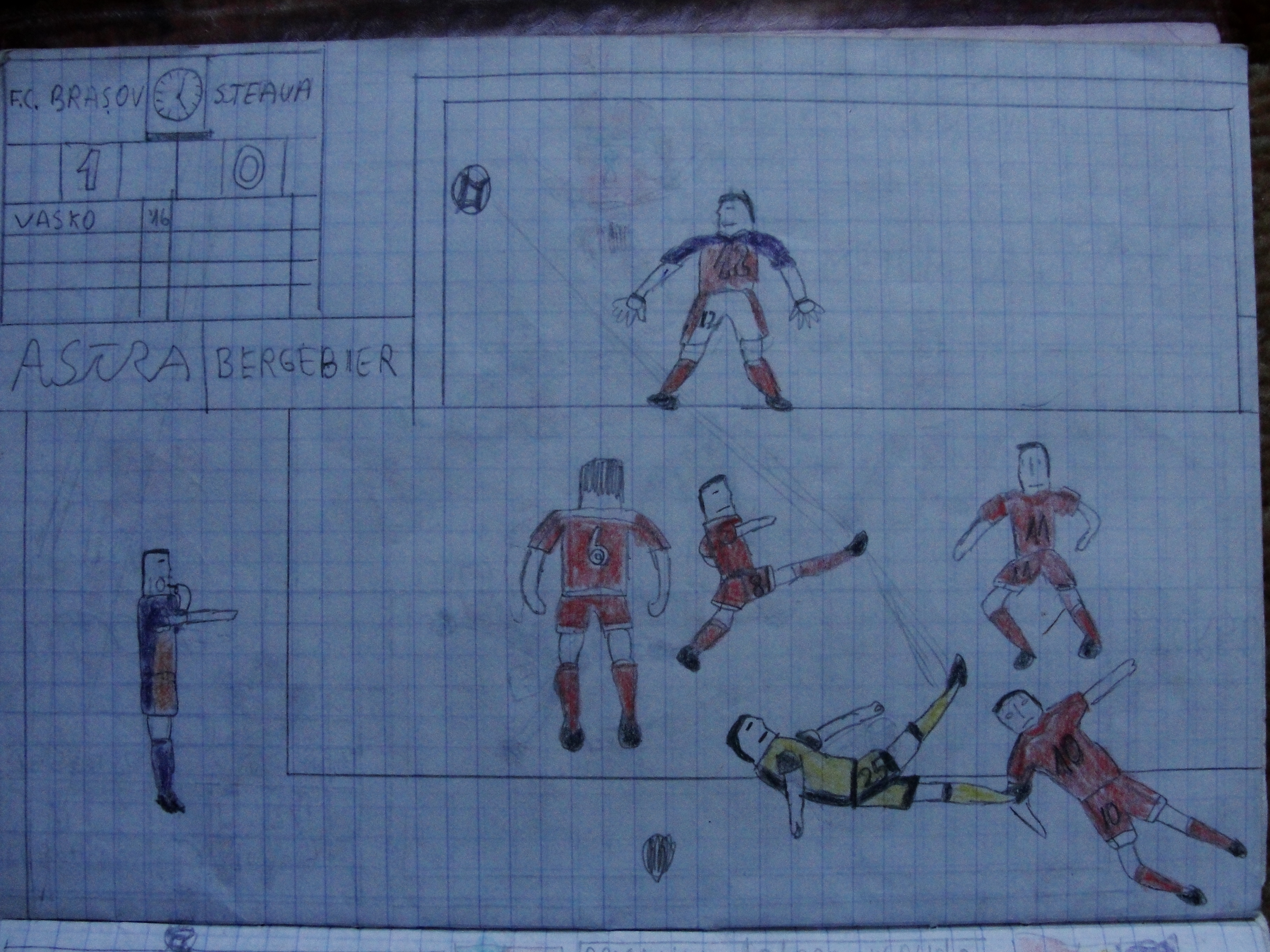 Şi, ca să încheiem această aducere aminte despre fostul mare atacant „stegar” într-o notă optimistă aveţi mai jos un desen document ce imortalizează golul lui Vascko din meciul cu Steaua ce a ajuns și pe CNN la „Play of the day”. „Opera” îmi aparţine aşa că fiţi blânzi cu criticile. Aveam zece ani când am desenat golul.