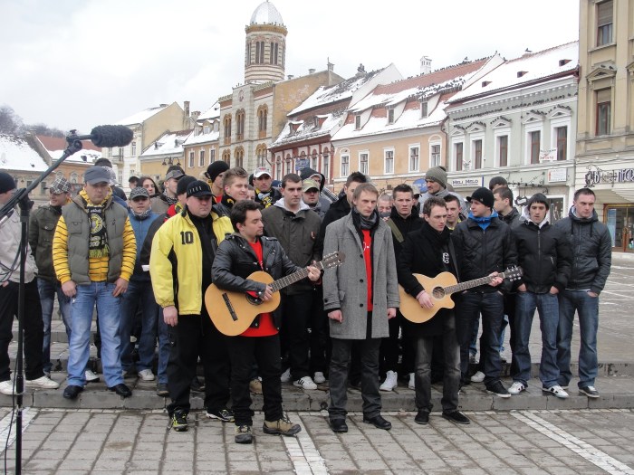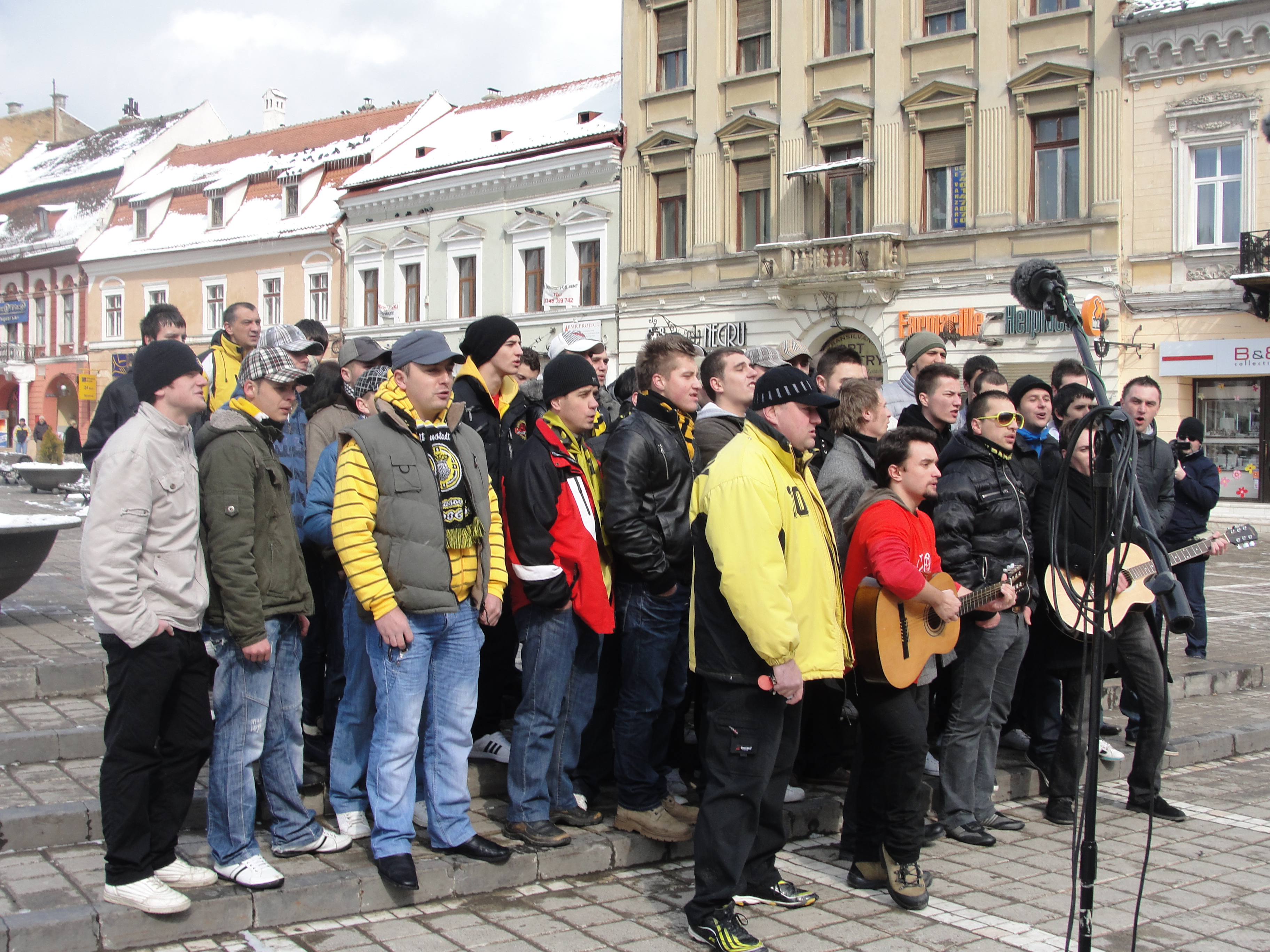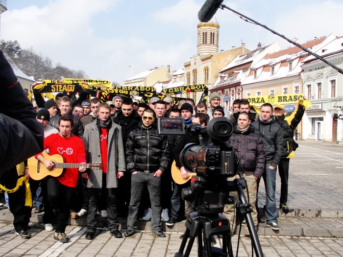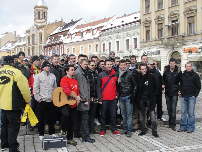 Un turist prin Braşov a dorit o amintire cu Andi Moisescu şi fanii „stegari”