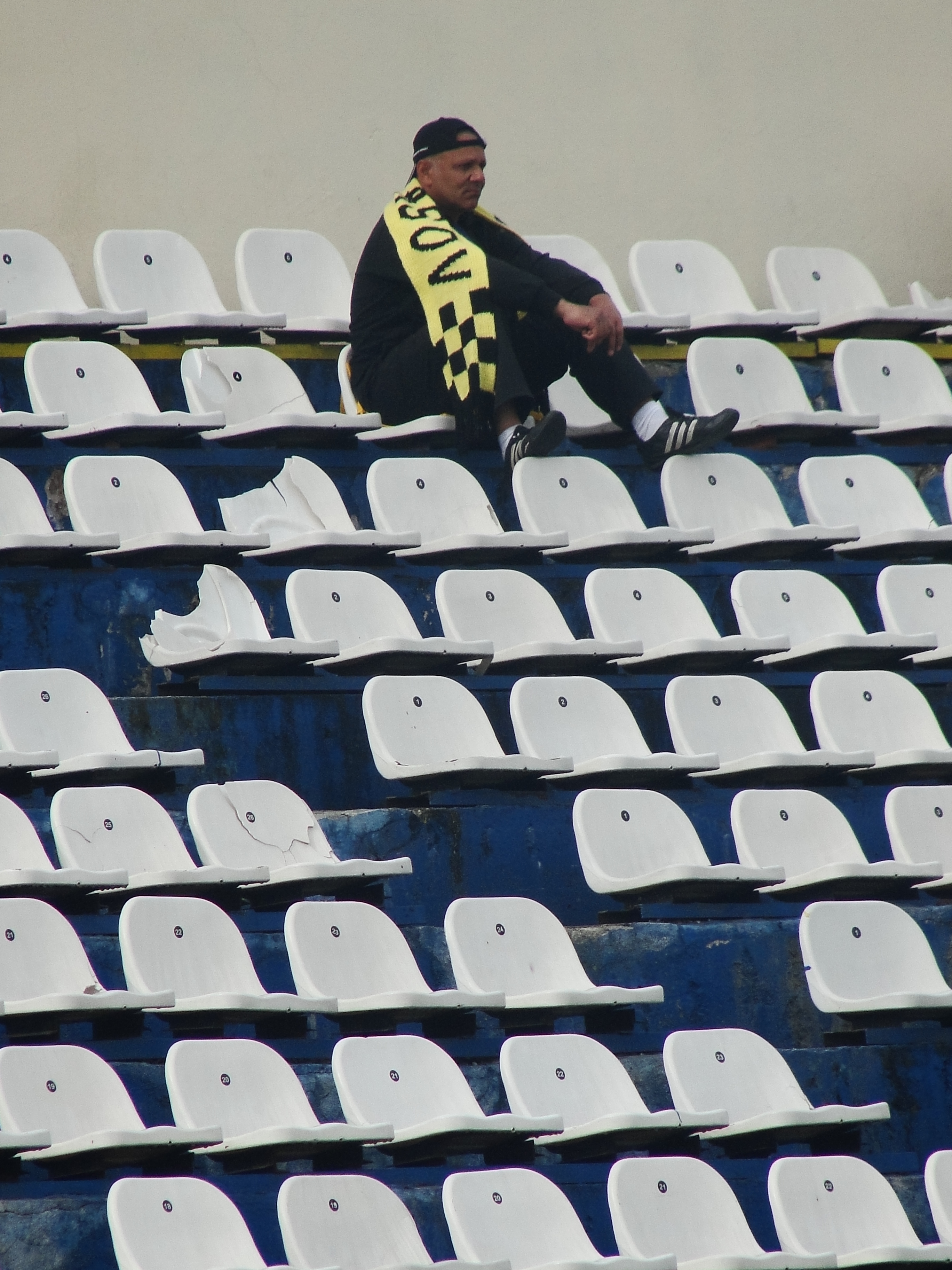 • Mulţam de aprecieri! Acuma ştii care-i ironia sorţii? A ieşit o poză ce militează împotriva fotbalului modern, dar preferam să na-m ocazia să fac o aşa poză, mai ales pe stadionul nostru. Oricum, cinste acelui „stegar” că a ales să fie la meci şi nu altundeva.