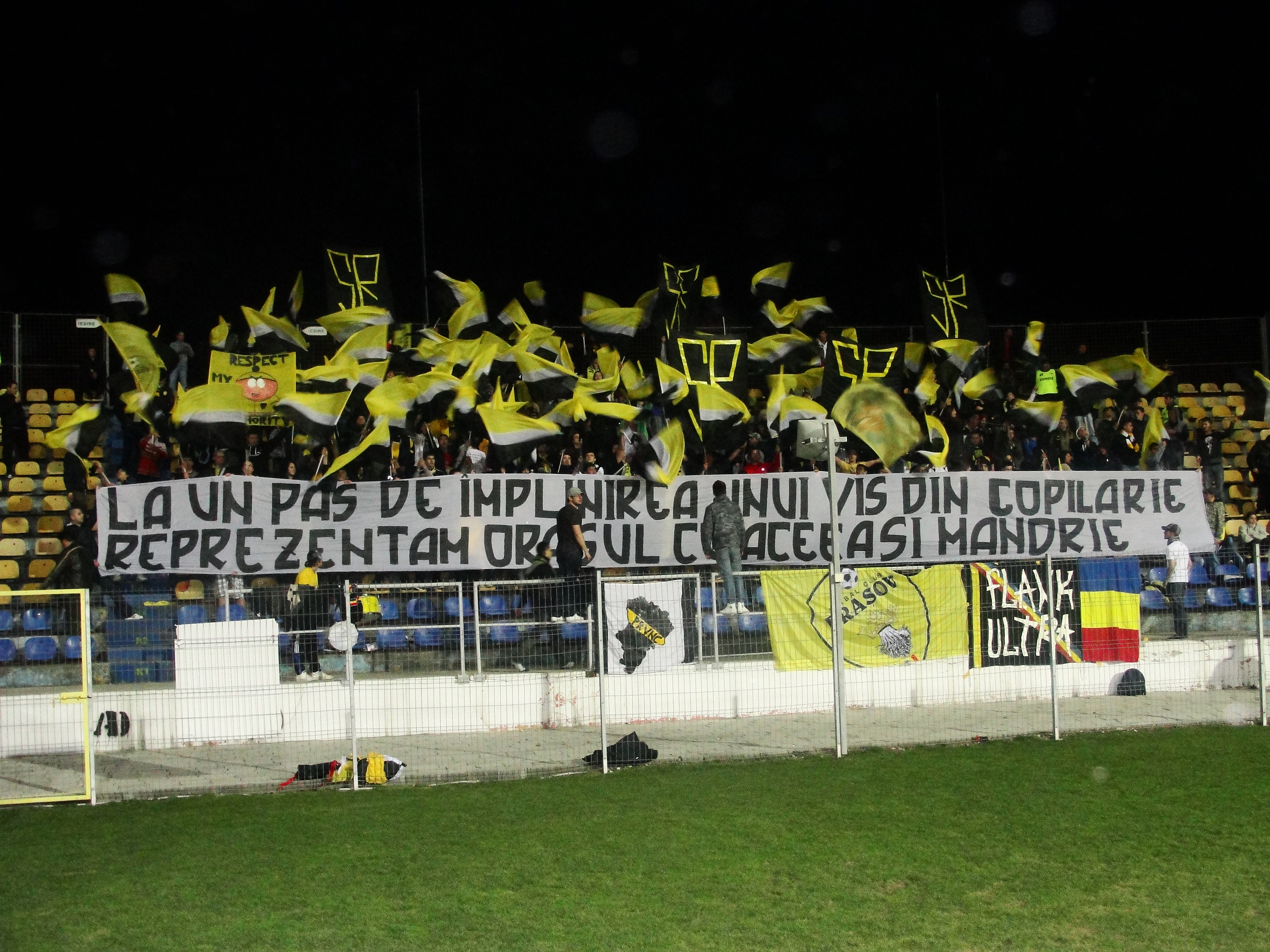 Dacă în Cupă echipa se autodepăşea, în campionat totul era pe dos. De la pretenţii europene am ajuns să navigăm la mijlocul clasamentului fără nici un orizont. Dar când aveam la mijlocul lui aprilie meciul vieţilor noastre, returul din Cupă cu Vaslui, parcă am trecut mai uşor peste insuccesele din campionat. Între timp reuşisem să vopsim şi imensul steag de gard cu „BRAŞOV” şi totul era bine. Pe 15 ale lunii, 500 de „stegari” ne-am deplasat joi seara la Vaslui. O ploaie morăcănoasă ne-a întâmpinat, ca un fel de avanpremieră la iadul ce urma. Şi pe care cu toţii, vrem nu vrem, ni-l amintim. O ieşire dureroasă din Cupă, o echipă care nu şi-a respectat deloc suporterii (asta a fost impresia celor prezenţi, nu pun eu etichete gratuite), dar un drum de întoarcere feeric. Sfârşitu’ n-a fost aici!