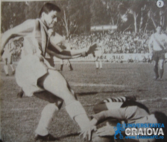 Fotografie găsită pe un site oltenesc. „Stegarul” Vasile Papuc (înainte de a se reprofila fundaş), încercând să-l învingă pe portarul craiovean. Acţiune dintr-un meci contra Universităţii Craiova, din 15 mai 1966, jucat pe stadionul „Tractorul” („Tineretului” era în renovare/extindere). Observaţi pe fundal tribuna a doua înţesată cu suporteri.