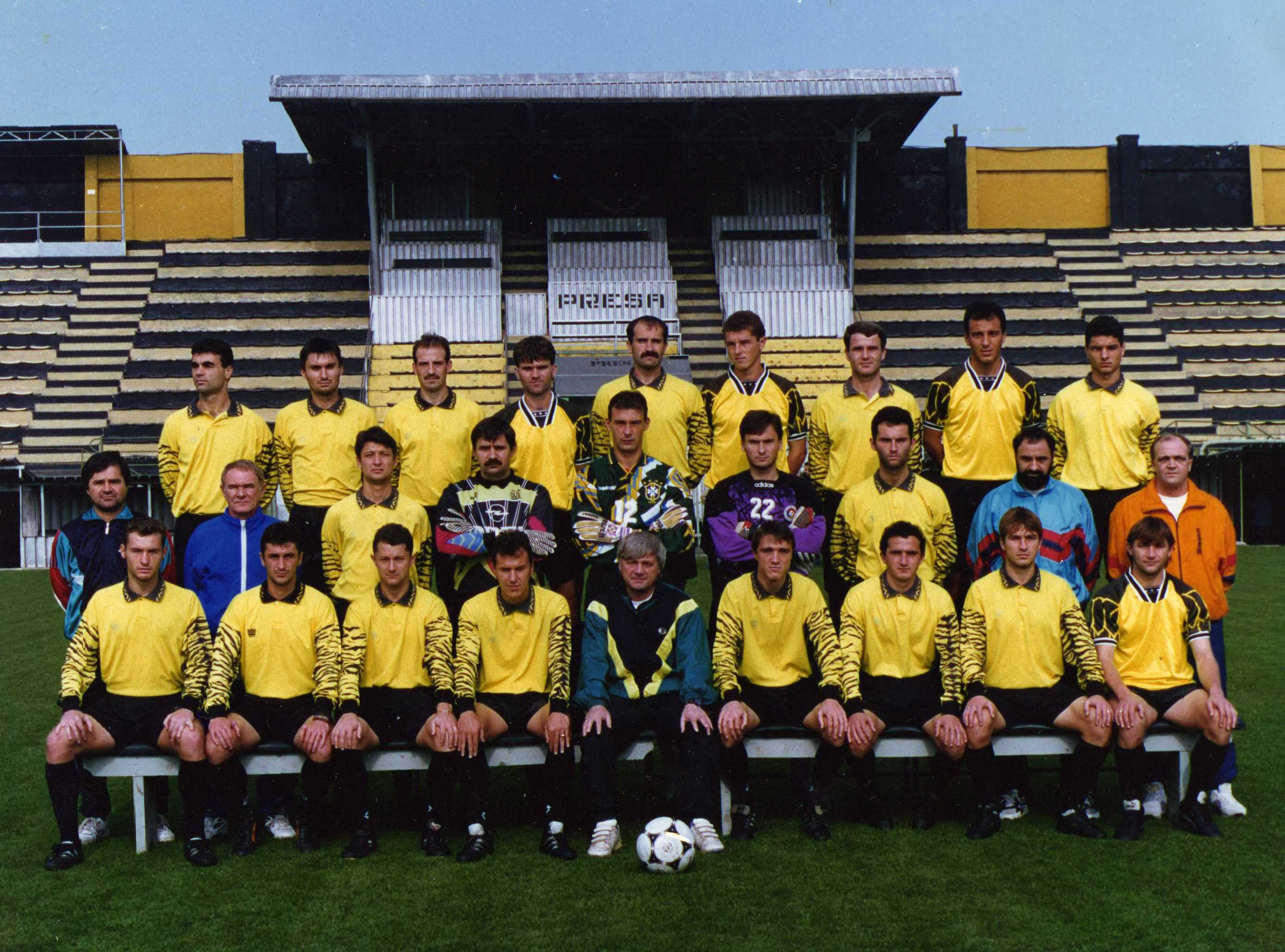 Înaintea sezonului 1995/96. Primul din rândul de mijloc, de la stânga la drepta, este Nae Pescaru alături, ca de obicei, de bunul său prieten Csaba Györffy. Aceștia au fost secunzii lui Gabi Stan în acea perioadă.