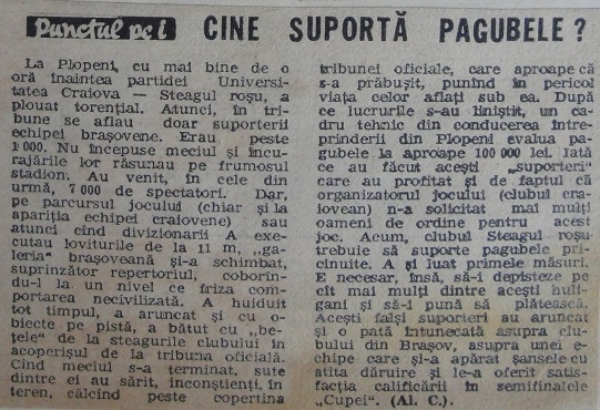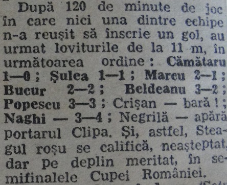 Pe 13 iunie 1979, Steagul Roşu Braşov înfrunta în sferturile Cupei României Universitatea Craiova, deţinătoarea trofeului. "Stegarii", aflaţi în Divizia B, porneau cu şansa a doua, însă ţin piept echipei craiovene şi după 120 de minute scorul a fost egal, 0-0. Au urmat apoi dramaticele penalty-uri.