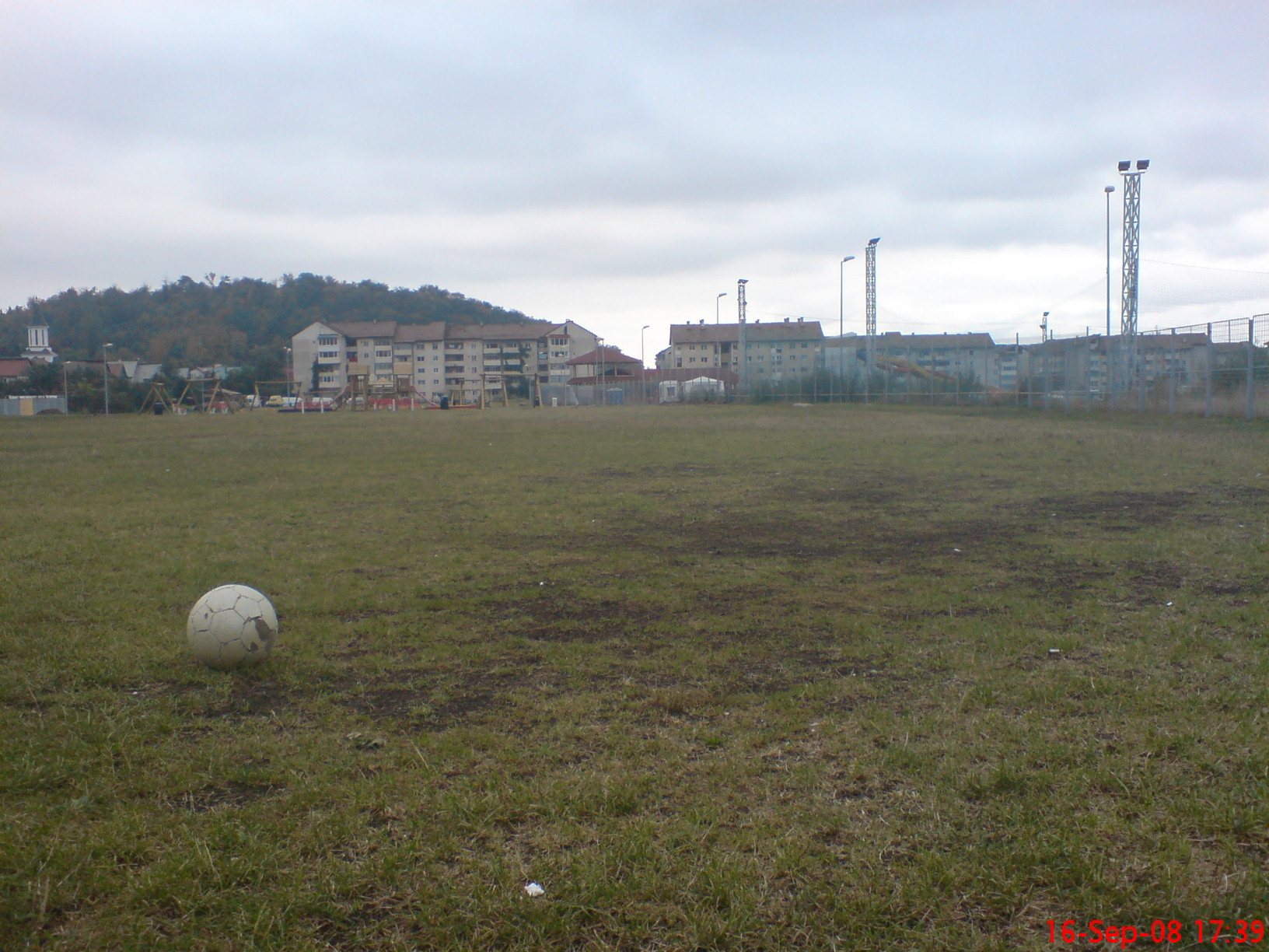 De aici și până cam unde-i duba aia era terenul. Ce dacă era îngust? Nu făceai prea mult până sus pe gard să te bucur la goluri.