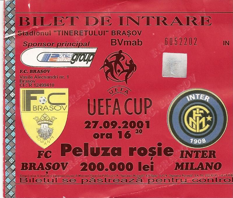 Bilet de la FC Braşov - Inter Milano. În 2001, 200.000 lei, echivalentul a 20 de lei de azi cum ar veni, nu era o sumă la îndemâna oricui.