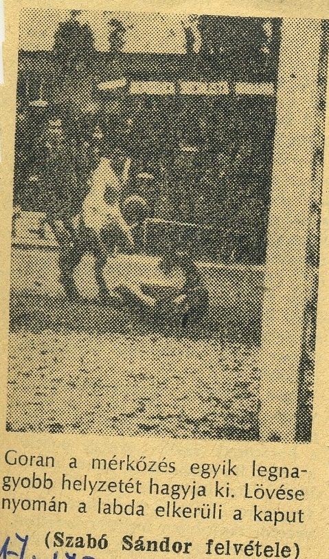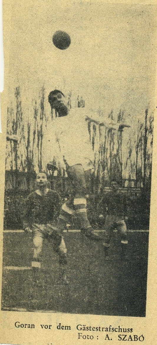 O fotografie enigmatică. Ar fi din februarie 1967, însă nu se ştie adversarul. Se ştie doar atât: pe „Tineretului”, lovitură de cap şi gol, Marcel Goran