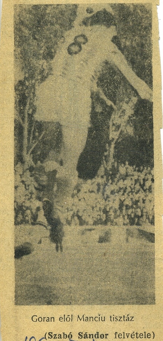 Emanoil Haşoti la balon. Se observă foarte bine echipamentul „stegarilor” din acea perioadă: tricouri albastre, şorturi negre şi jambiere albe. Până în 1968, „stegarii” au avut culorile alb şi albastru, înainte de a trece la galbe-negrul din prezent.