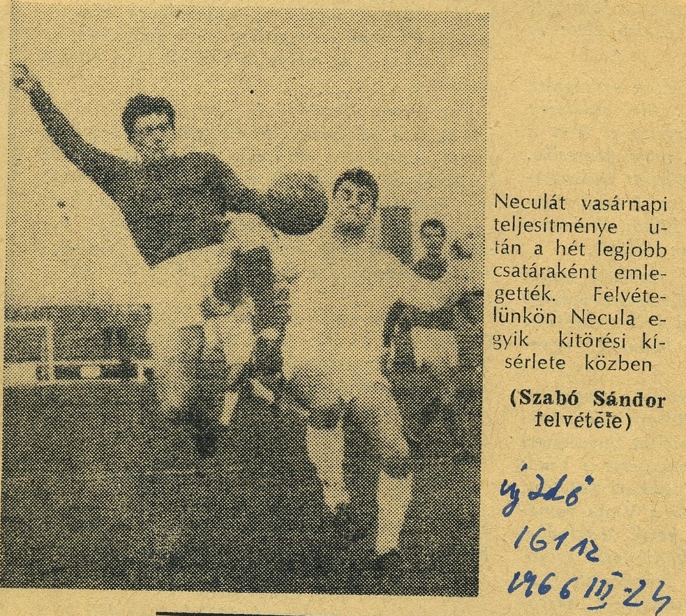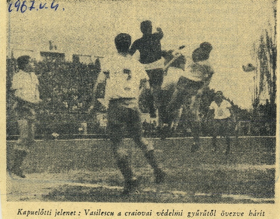 August. Victorie la scor a „stegarilor” în faţa dinamoviştilor (4-1), în primele etape ale sezonului 1965/66. Aici portarul dinamovist încercând, în zadar, să oprească mingea care va intra în poarta sa.