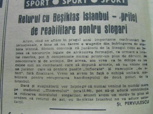 In sfarsit in pagina a treia, gasim cronica meciului, sub titlul ” O realizare rara in analele fotbalului”. Va las s-o cititi singuri, dand zoom pe fotografie. De remarcat doar aprecierea ziaristului la adresa antrenorului Proca, despre care spune ca ” a avut curajul sa schimbe apararea” pentru acest meci. Era vorba de titularizarea tinerilor fundasi centrali Naghi si Mihailescu,