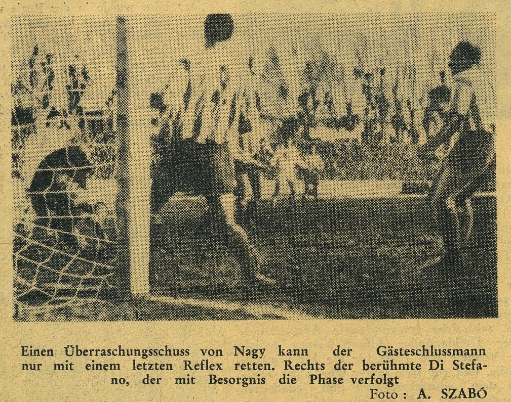 Sunt un tip care adoră la nebunie detaliile. Pentru a nu vă plictisi prea tare o să vă atrag atenţia asupra a doar două astfel de detalii observate în videoclip. Mai întâi, când şutul din lovitură liberă a lui Nagy este respins incredibil în corner de Carmelo, un miliţian aflat în spatele porţii, aproape de peluză, are o reacţie foarte savuroasă. Celălalt detaliu este faptul că am reuşit să identific faza din meci în care a fost realizată fotografia de la „Prima pagină” (o găsiţi mai jos). Faza e reprezentată de cornerul care urmează loviturii libere, cu Carmelo respingând mingea. În dreptul porţii se observă trei fotografi, iar unul dintre ei este fără îndoială Szabó Sándor, bunicul amicului meu Aron, cel care a realizat fotografia. Pariul meu este că Szabó Sándor e cel aflat în centrul grupului de trei.