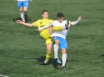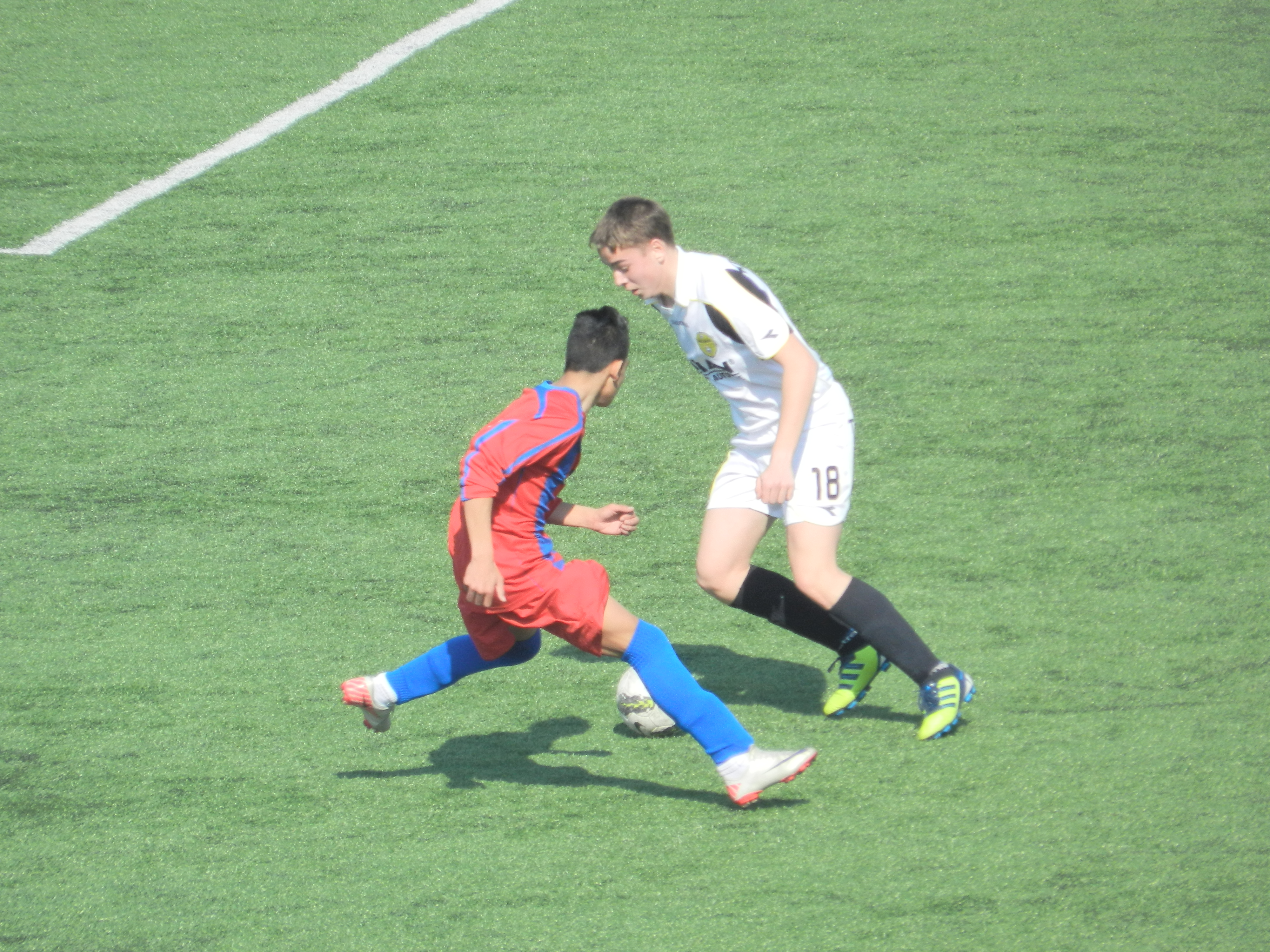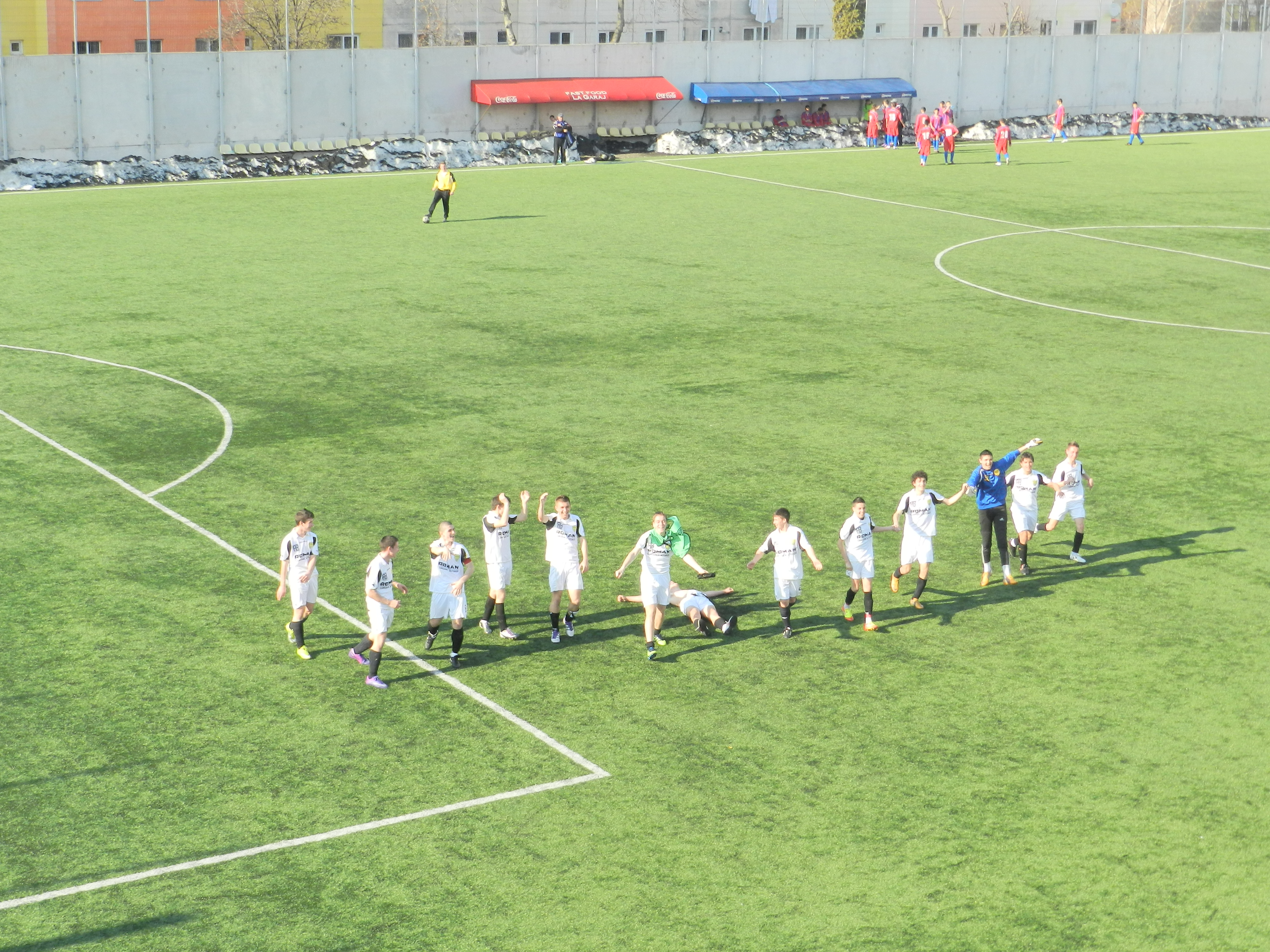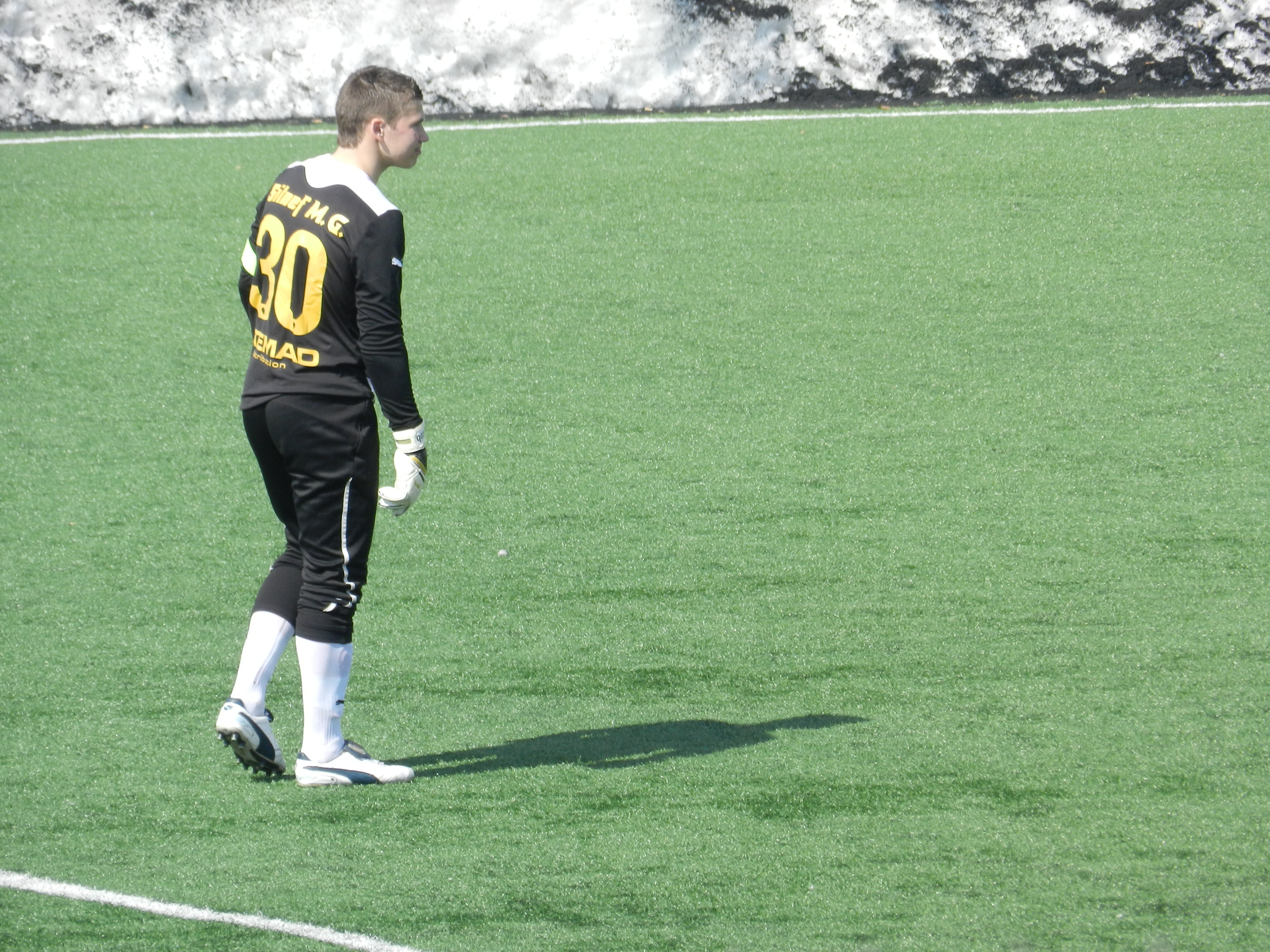 Meciul a început de la 12 fix. Eu am ajuns de la repriza a doua, când scorul era deja 1-1. S-a jucat pe sinteticul de lângă, întrucât terenul de iarbă al ICIM-ului era în curs de deszăpezire. Am luat loc undeva în înaltul scheletului de metal al neterminatei tribune şi m-am pus pe fotografiat şi observat. Repriza mi s-a părut a fi destul de echilibrată, cu o uşoară dominare de partea „stegarilor”. În tribună, părinţii veniţi să-şi vadă copiii la meci erau destul de activi în a comenta răbufnirile cu ecou ale antrenorului, iar o mamă mi-a lăsat impresia că „dreacu’ ” e ticul ei verbal. Oricum, interesant meciul văzut din această perspectivă.