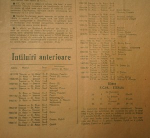 Singura informaţie de interes o găsim în pagina a treia şi anume rezultatele tuturor întâlnirilor anterioare dintre Steagul Roşu şi Steaua, precum şi marcatorii golurilor braşovenilor. Cum remarca şi autorul, până la retrogradarea din 1983, stegarii aveau un palmares pozitiv: 15-14 la victorii !