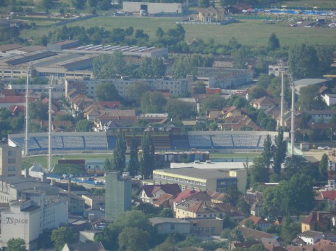 Deşi am urcat pe „Muntele Timpului” cu alte treburi (puteţi vedea aici despre ce e vorba), primul lucru pe care l-am făcut odată ajuns sus a fost să caut stadionul, să pun obiectivul pe el şi să apăs declanşatorul. Voila! Diseară e mare meci mare, aşa că Hai Steagu’ !