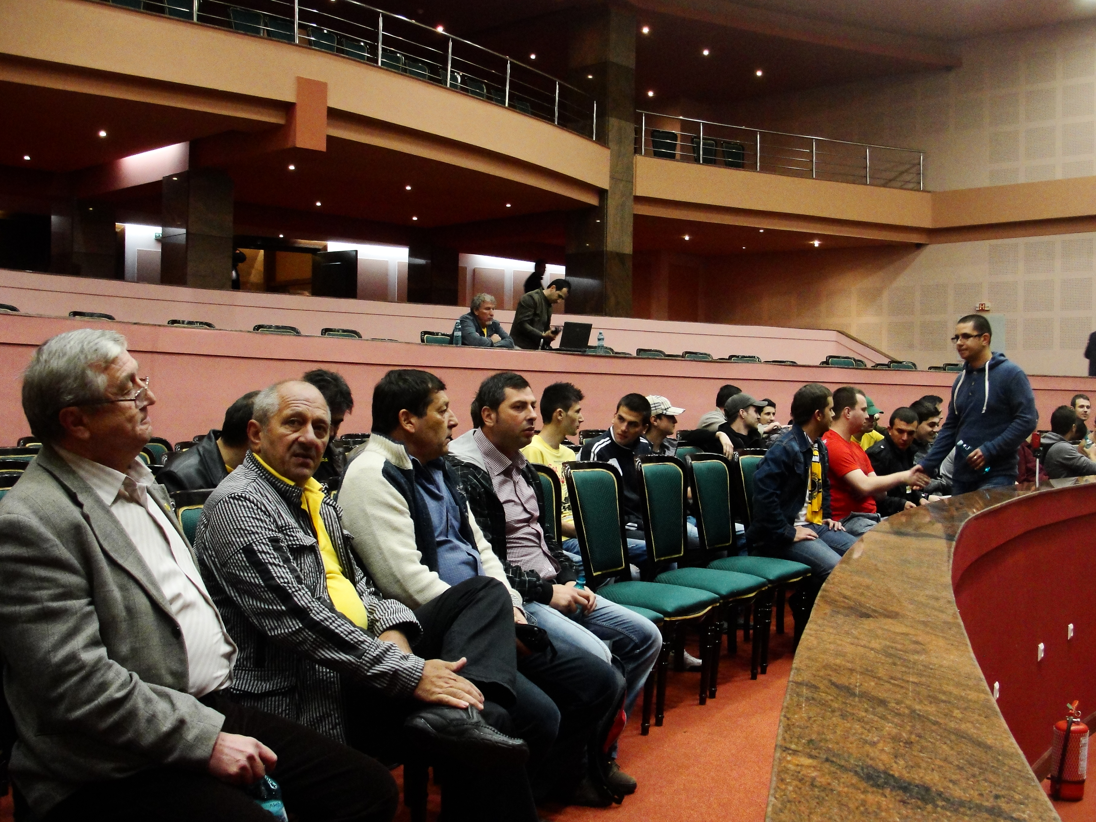 Cam aşa a sunat intro-ul lui Marian Olaianos în faţa celor 50 şi un pic de suporteri „stegari” care au luat parte la întâlnirea de la Complexul Favorit. Au fost suporteri de toate vârstele, chiar mi-a făcut o mare plăcere să întâlnesc fani cu vechime, care vin la meciurile echipei încă din anii ’60, care sunt abonaţi ai clubului din… totdeauna, „exceptând perioada aia în care nu s-au făcut abonamente şi a trebuit să-mi iau bilet”.