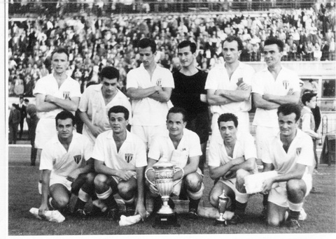 „Progresiştii” fotografiindu-se alături de trofeul obţinut în 1960. Nicolae „Ulise” Oaidă se află în rândul de sus, al doilea de la dreapta spre stânga.