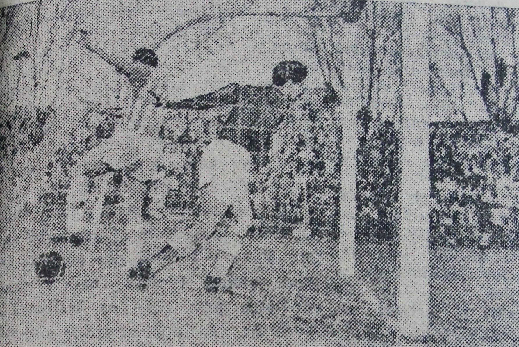 Primăvara lui ’61, pe „Tractorul”, Steagu’ bătea Progresul Bucureşti cu 5-0. Gheorghe Fusulan, tricou închis, şort alb, se duce să sărbătorească golul.