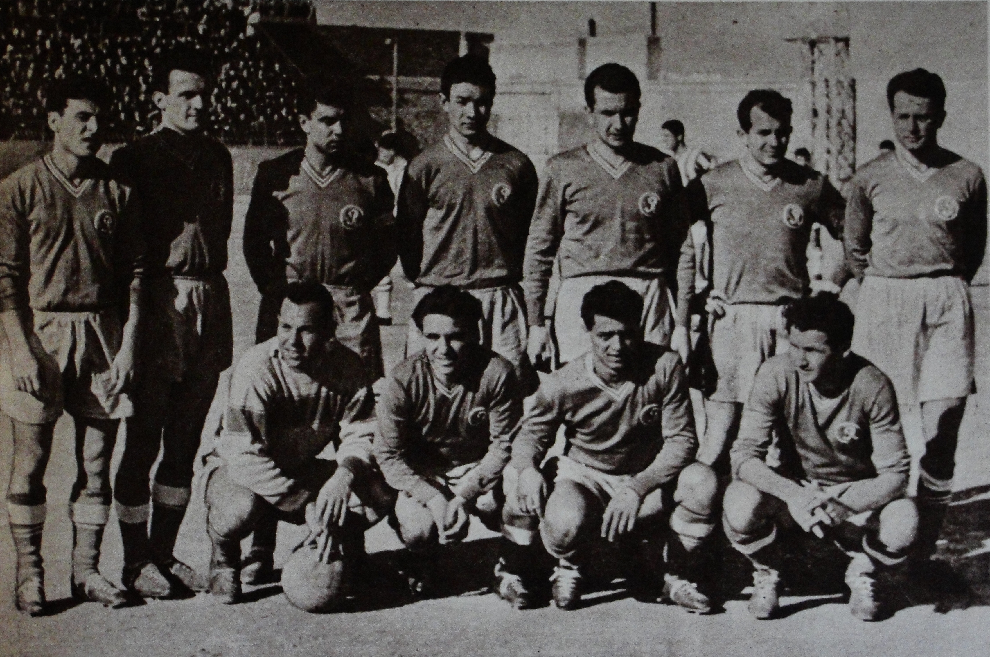 În picioare, de la stânga: Haşoti, Zbârcea, Szeredai, Nagy, Szigety, Meszaroş, Campo. Jos: Ghiţă, David, Năftănăilă, Zaharia. Observaţi elegantul echipament de joc, compus din tricouri albastre cu guler în „V”, având la piept brodată o emblemă cu literele „S” şi „R” stilizate.