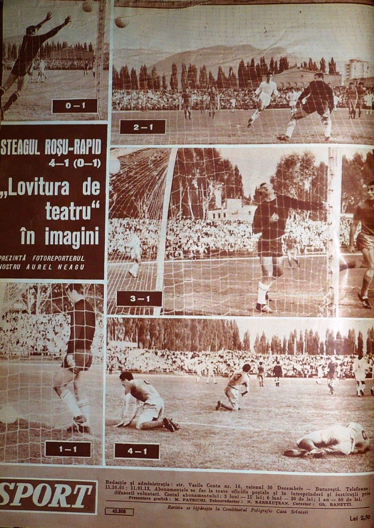 Pe coperta a 4-a a revistei „Sport”, spectaculoasa revenire a „stegarilor” este redată prin fotografiile realizate de Aurel Neagu.