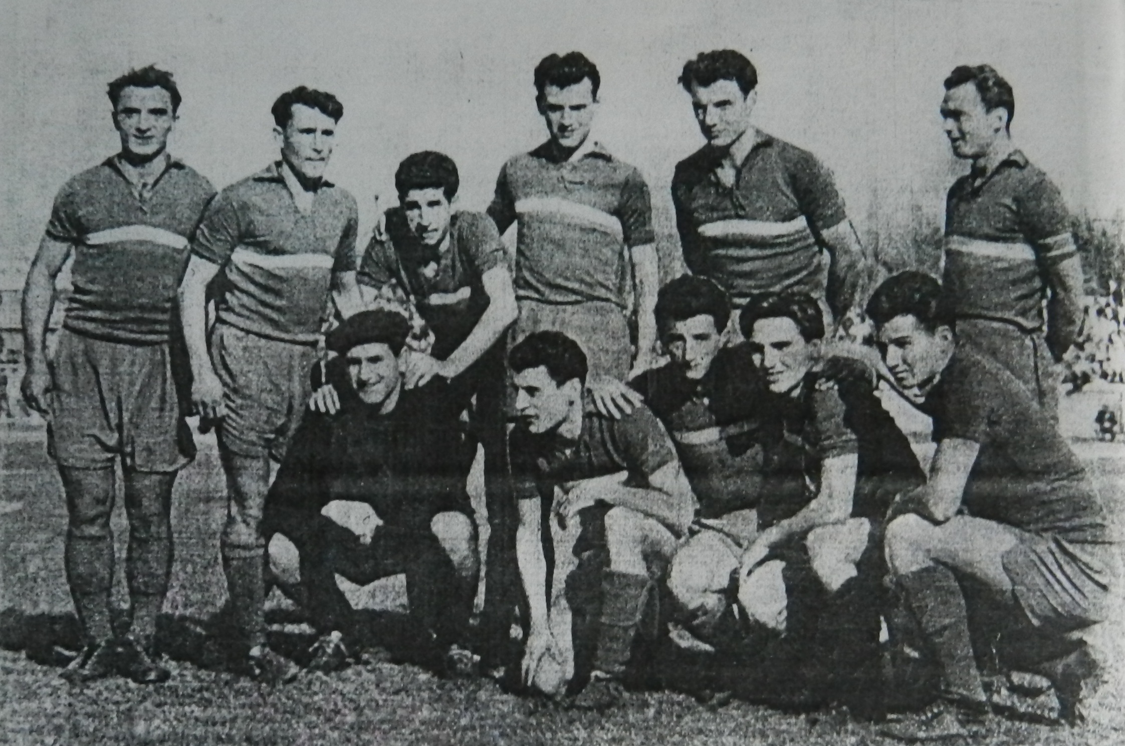 Energia Steagul Roşu Oraşul Stalin (Steagu’, pe scurt) campioana Seriei a II-a din Categoria B, ediţia 1956. Acest prim 11 este compus din următorii: Raicu, Percea, Fusulan, Aron, Proca şi Marinescu (observaţi banderola); jos fiind Constantinescu, Haşoti, Ciripoi, David şi Zaharia.