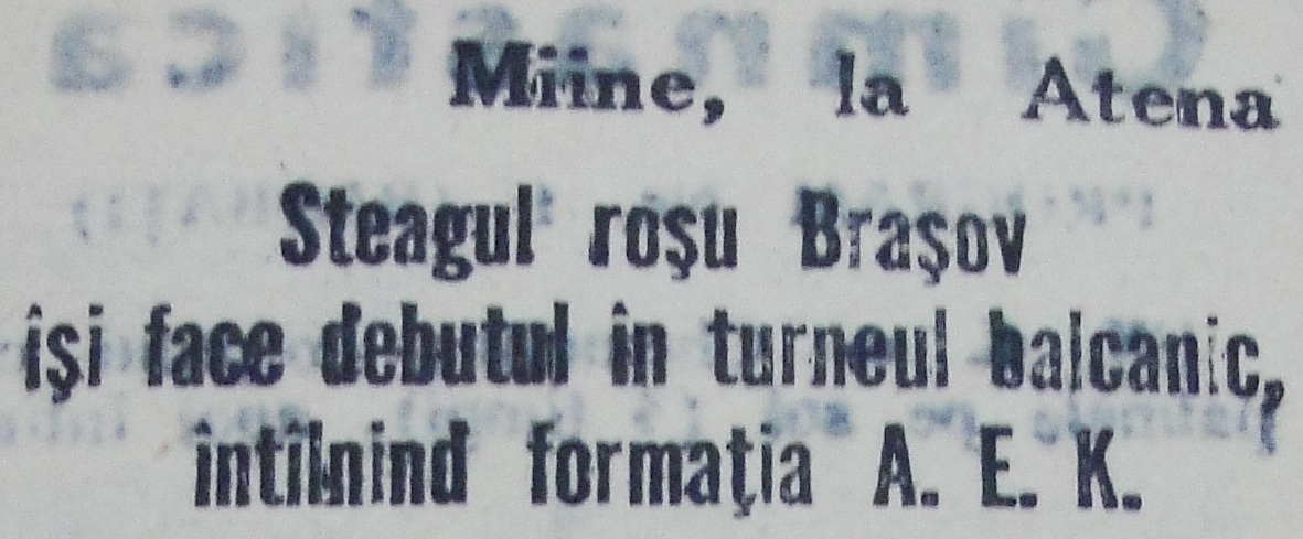 „Meciul care va avea loc pe stadionul clubului A.E.K. stîrneşte un viu interes în rîndurile iubitorilor de fotbal atenieni. Toate cele 20.000 de bilete au fost epuizate de mai mult timp.”