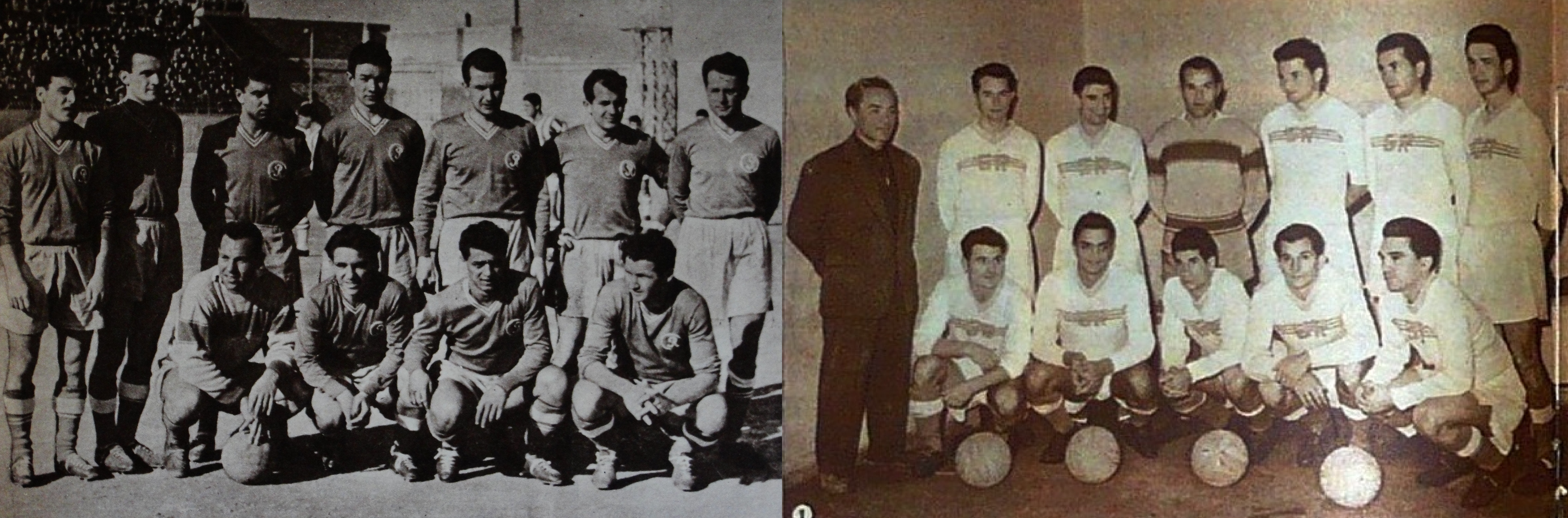În stânga suntem în februarie ’61, iar în dreapta ne afăm în luna noiembrie din acelaşi an. Ambele fotografii au fost realizate în ziua de 15. Prima a fost făcută înaintea meciului de debut al „stegarilor” în Cupa Balcanică, a doua după meciul în care trofeul a fost cucerit de băieţii lui Silviu Ploeşteanu. Cele 4 mingi echivalează cu numărul de goluri reuşite în epilogul competiţiei.