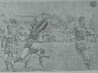 3 octombrie 1957: Primul meci dintre FC Braşov şi Dinamo Bucureşti, care pe vremea aceea se numeau Energia Oraşul Stalin şi… Dinamo Bucureşti. Meciul s-a jucat pe stadionul Dinamo. În imagine, portarul Ghiţă (cu braţele întinse, pregătindu-se să respingă) este flancat de doi coechipieri. sursa foto: fcdb.ro