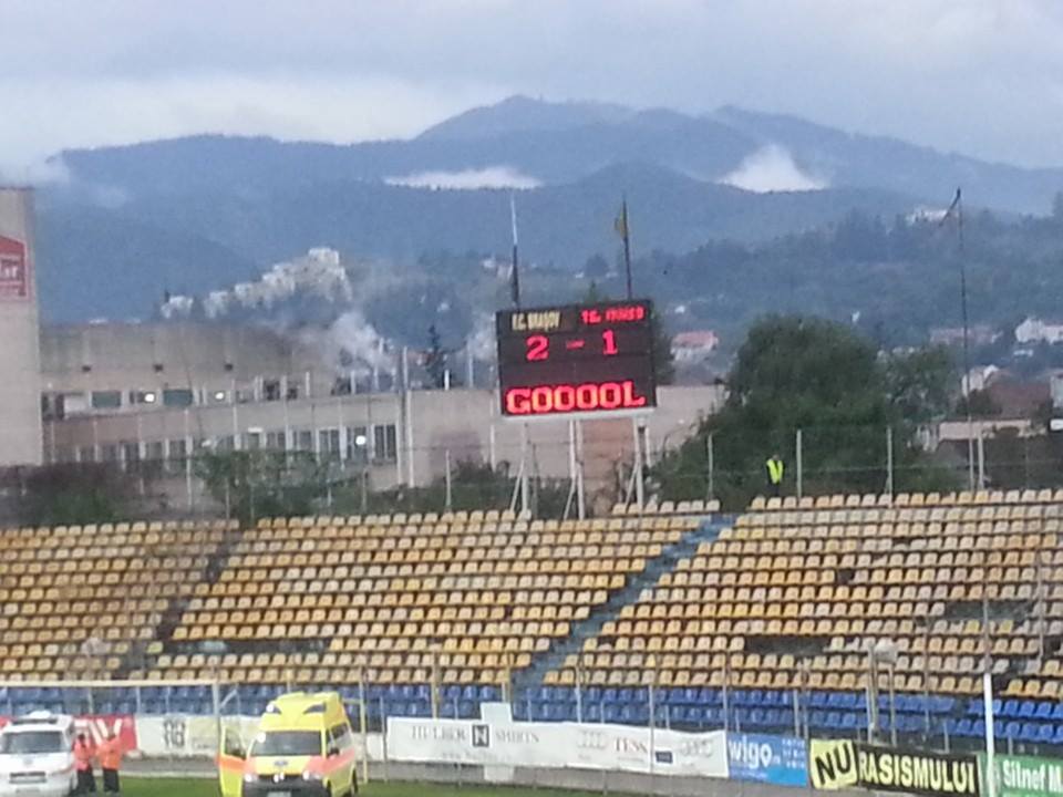 Am trăit şi vremuri când, după victoriile stegarilor, apărea curcubeul pe cerul Braşovului. Acum, proiecţia tabelei peste un oraş cenuşiu şi indiferent, asociată cu nişte peluze goale, ne lasă senzaţia că Marian Constantinescu şi-a strigat bucuria în pustiu. Inimile care mai pulsează pentru galben şi negru s-au aflat, de această dată, la tribuna I. Nevăzuţi pe transmisia tv, ignoraţi şi poate ironizaţi de restul braşovenilor, aceşti suporteri au o nebunie şi o încăpăţânare a lor. Aici arde focul viu, care ţine în viaţă această echipă, nu în clădirile administraţiei locale, şi nici măcar în biroul patronului.