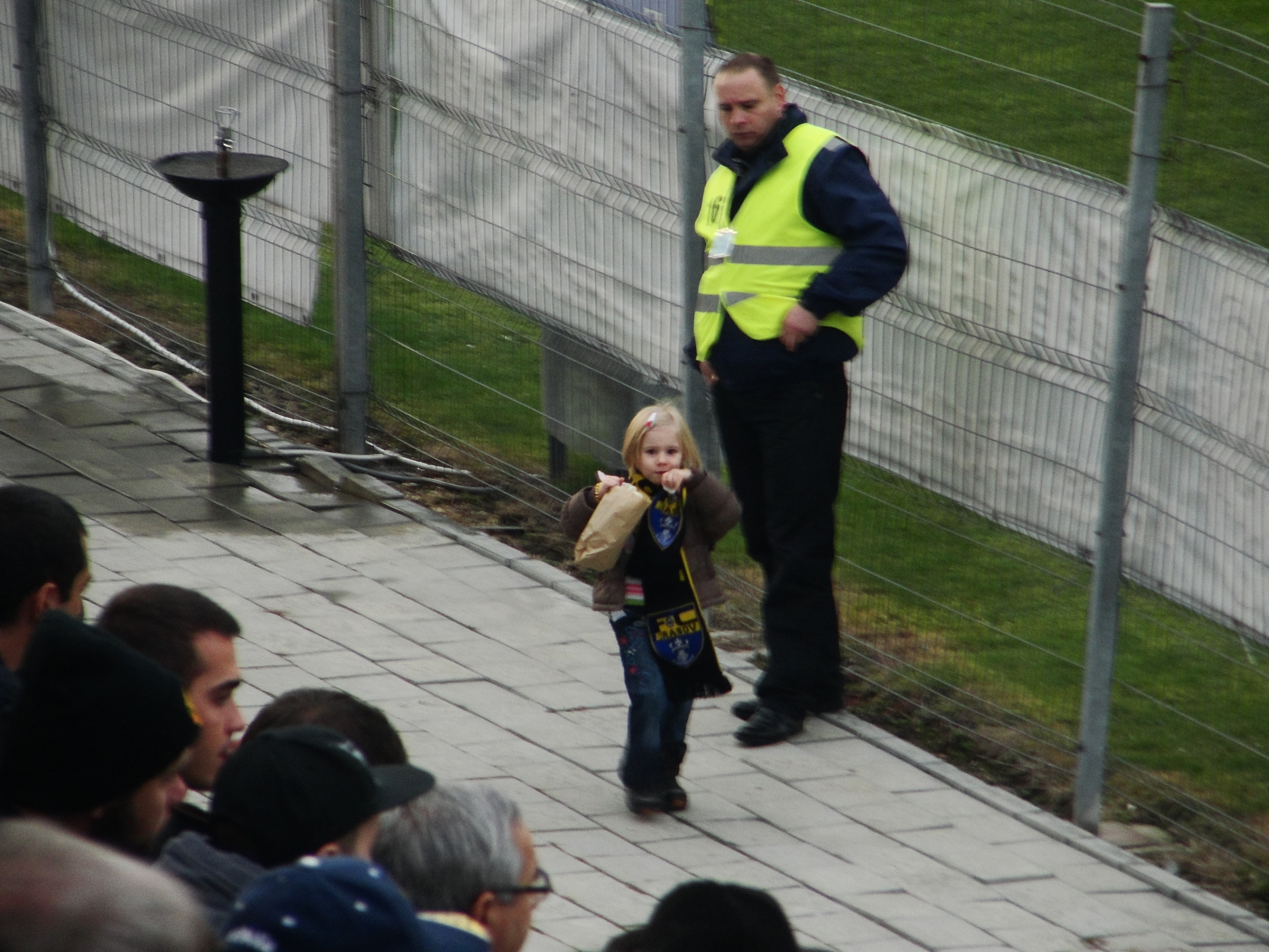 Fularul mai mare decât ea, punga cu floricele aproape jumătate cât ea. Probabil cea mai frumoasă blondină care a călcat vreodată pe stadionul „Silviu Ploeşteanu”. Îmi plac copiii. Am doi nepoţei cărora încerc să le câştig dragostea pentru galben şi negru. Momentan totul merge conform planului.