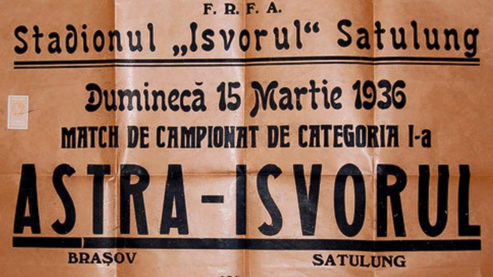 15 martie 1936, „Duminecă” – Graţie unui alt pasionat de istoria fotbalului braşovean, Marian Olaianos, avem date şi de la un meci din primăvara anului 1936, când Astra Sportivă se deplasa la Satulung pentru a juca împotriva echipei locale Isvorul. Satulung era la acea vreme unul din satele care mai târziu va forma, alături de Baciu, Turcheş şi Cernatu, oraşul Săcele.