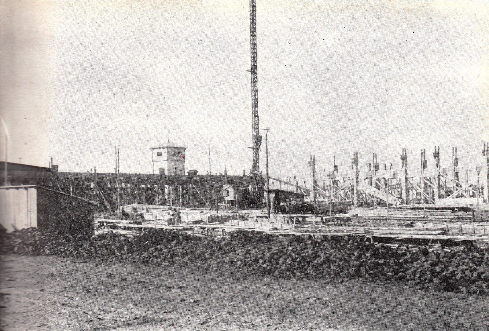 1935 – Uzinele Astra Braşov se află în construcţie. În fundal se poate observa turnul vechii fabrici ROMLOC. sursa foto: cartea Uzina de Autocamioane Braşov 1921-1971