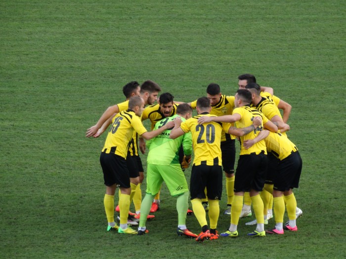 „Stegarii” (tricouri albe) şi „Burevestnicii” salutând publicul de pe „Republican” înaintea meciului; foto de A. Bociarov, via