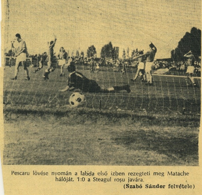 La pauză scorul a fost 1-1, Pescaru modificând primul tabela dintr-o centrare a lui Györffy, o mişcare clasică a Steagului acelor ani. Tot lui Pescaru i-a fost refuzat golul de 2-1, când portarul Niculescu „nu se lasă bătut nici de şutul – trăsnet al lui Pescaru din min. 27 care părea că va distruge plasa” (Jack Berariu, Sportul Popular din 29 septembrie 1969)