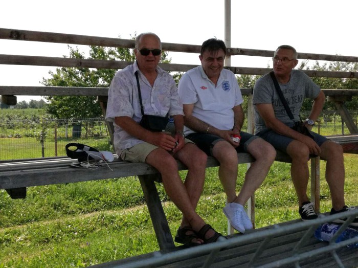 22 iulie 2017, Sânzieni. Petru Cadar, Nicu Badea (vice-preşedintele AS „SR” Braşov) şi Valer Şulea rememorând anii când toţi aveau câteva viteze în plus şi riduri în minus, dar şi optimişti în ce priveşte viitorul naţiunii Steagomane. foto de Petre Lucian