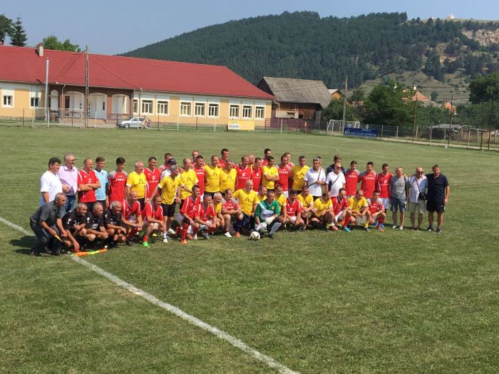 După meciul contra suporterilor din iunie, echipa de old boys a Braşovului (pe care am botezat-o de la sine putere Steagu’ Retro Braşov pentru că sună bestial) s-a reunit ca-n filmele cu super eroi la Sânzieni, judeţul Covasna, în acest weekend, la chemarea lui Joszeff „Ioji” Gall, fostul fundaş „stegar” din perioada 1992-1994, care acum locuieşte în Sânzieni şi antrenează echipa locală.