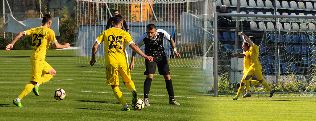 Vîrlan a trimis mingea peste întinderea disperată a lui Căucă, însă şi peste poartă. foto de Cătălin Ignat
