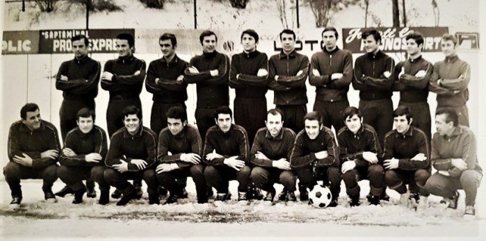 - De la stânga: Stere Adamache (portar), Nicolae Pescaru (fundaş central/mijlocaş), Csaba Györffy (extremă stânga) şi Mihai Ivăncescu (fundaş dreapta)