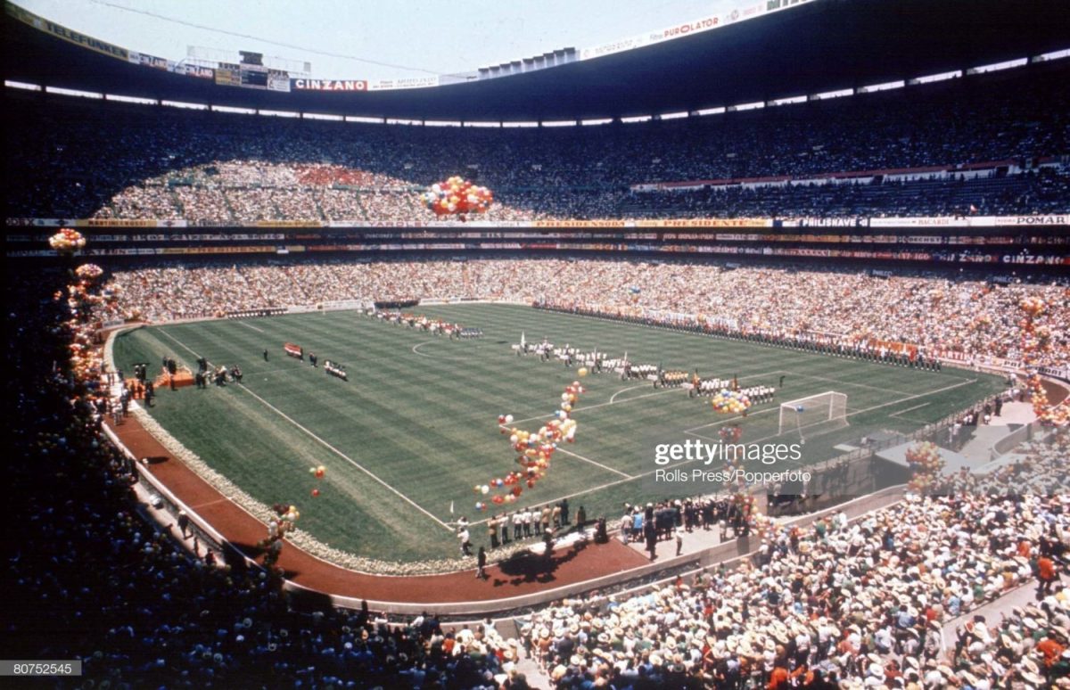 1970 World Cup Finals, Mexico City, Mexico, 31st May, 1970, Mexico 0 v Soviet Union 0, A general view of the Azteca Stadium during the Opening Ceremony (Photo by Rolls Press/Popperfoto via Getty Images/Getty Images)