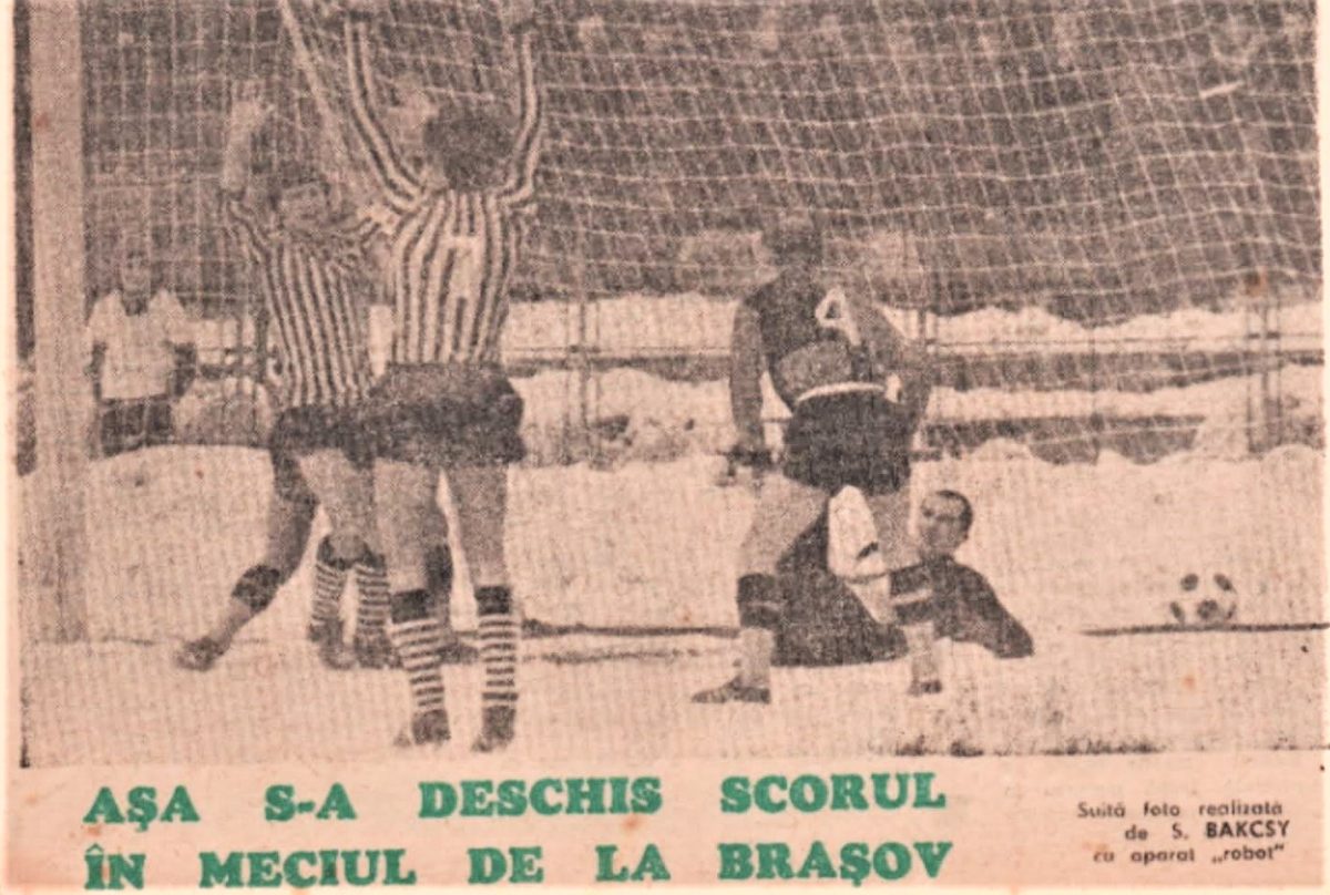 Csaba Györffy (nr. 7) a deschis scorul şi se bucură împreună cu prietenul său Nicolae Pescaru (plan depărtat, cu faţa). foto de S. BAKCSY