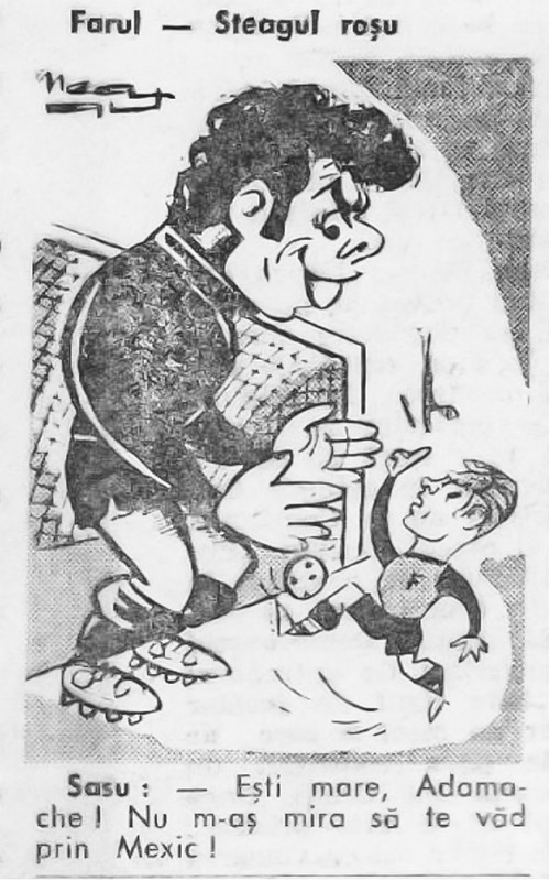Şi apropo de fotografia din meciul cu Farul, iată şi desenul post-meci. A fost un fel de premoniţie, întrucât peste doar trei luni de la confruntarea de pe malul Mării Negre, Adamache asigura victoria României cu Cehoslovacia la Cupa Mondială Mexico 70.