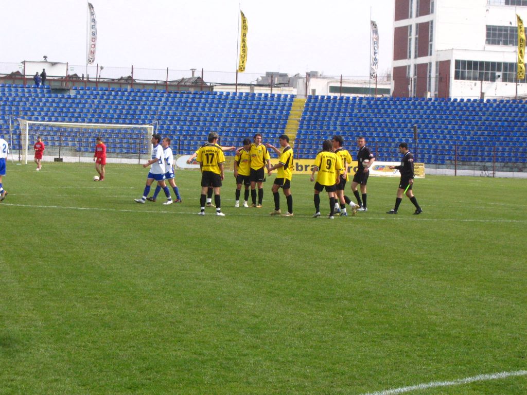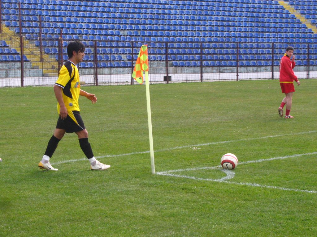- Angel Gaston Díaz în două ipostaze din timpul meciului cu Chimia Brazi, de pe 9 aprilie 2007: executând un corner și primind felicitările coechipierilor la finalul primei reprize; golul său oferise stegarilor avantajul minim la pauză. / FOTO: Cosmin Șerban