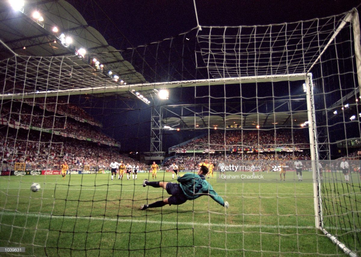 Ionel Ganea a invocat de două ori binecuvântarea Sfintei Treimi şi a făcut cinci paşi spre minge. Nigel Martyn a plonjat în dreapta, acolo unde trăsese Ganea cu Ciprul. Mingea se îndreaptă acum în partea opusă, în aceeași direcția în care șutase cu cinci ani mai înainte, pe vechiul Ilie Oană, la Ploiești, pentru a mai lua din amarul înfrângerii cu Petrolul. Nu exista YouTube pe-atunci, iar rezumatele meciurilor din decrepitul campionat românesc nu ajungeau la televiziunile din Anglia. Englezii care au găsit puterea să nu-şi acopere ochii privesc traiectoria mingii cu inima tot mai strânsă și speră că o forţă supranaturală o va împiedica să ajungă în plasă.