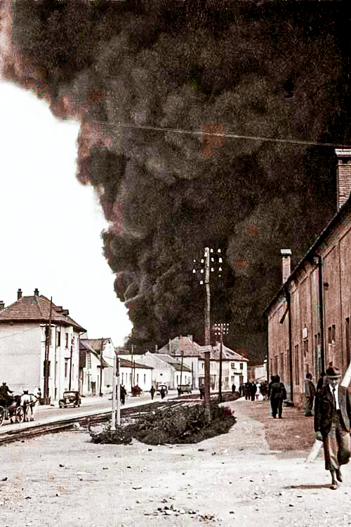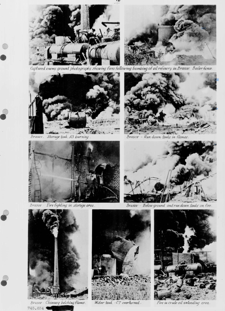 Fotografiile aeriene realizate din bombardierele americane ne prezintă dimensiunea distrugerilor, multiplele incendii de pe platforma Rafinăriei Brașov înălțând o coloană de fum ce a depășit 3.000 de metri înălțime.