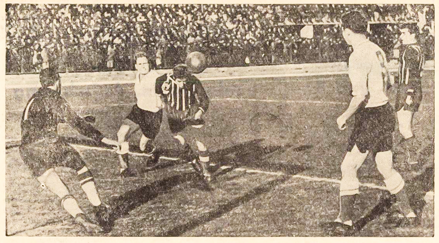 După ce Ozon a înscris în min. 8 golul pentru Rapid și mingea a fost pusă la centru cu vizibilă amărăciune de către tripleta Steagului Roșu, din două pase mingea a și ajuns la tușa de poartă a Rapidului, unde tînărul Gane l-a driblat pe Greavu și a centrat la David; această sfîrlează s-a învîrtit pe lîngă adversarii săi, cum numai el știe s-o facă și a reluat cu putere în plasă, pe lîngă Todor.”
