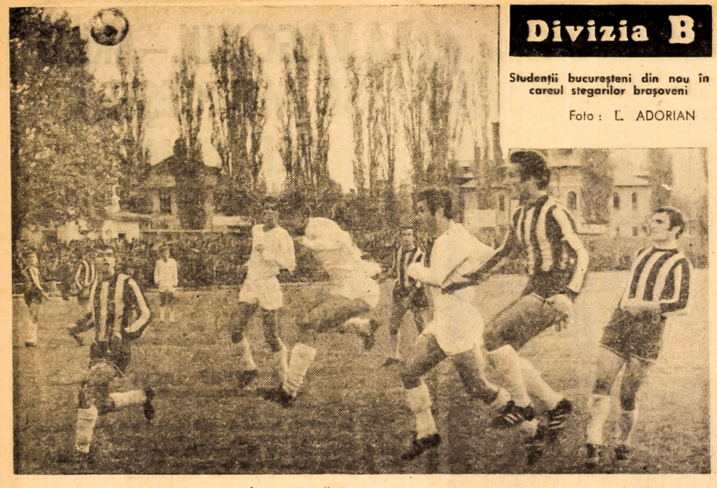 - două instantanee din remiza albă cu Politehnica București (fosta și viitoarea Sportul Studențesc), pe stadionul din Regie, care a precedat meciul de la Suceava. (dreapta: Fotbal, 31 octombrie 1968 / stânga: Sportul, 2 noiembrie 1968)
